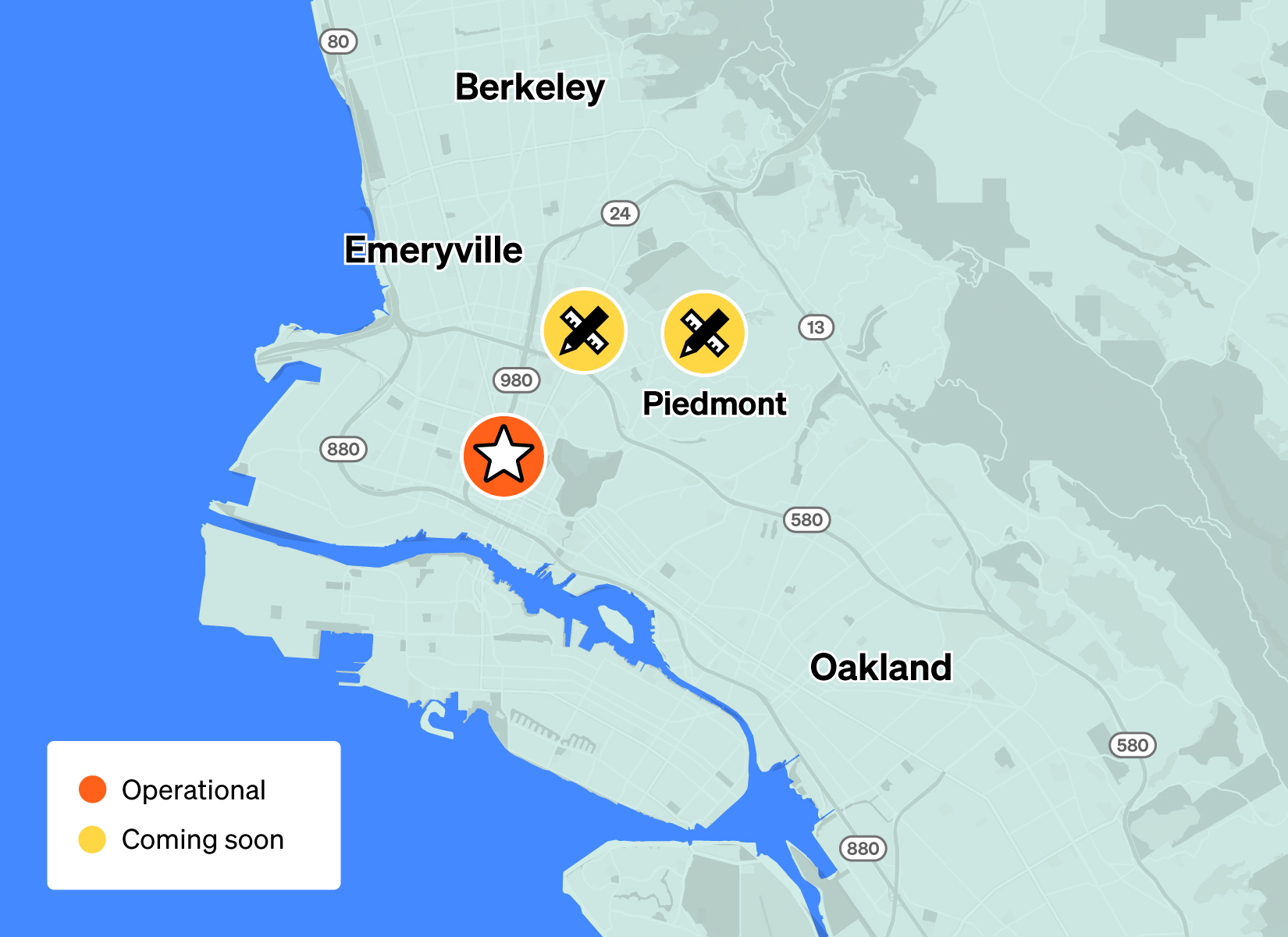 Each Ava Charge site comes equipped with charging ports to serve the diversity of EVs on the road today and in the future. NACS (Tesla, Hyundai Ioniq 5 MY25, Kia EV6 MY25, others with adapters) and CCS (Kia Niro, Volkswagen ID.4, Chevy Bolt, and nearly all other existing EVs) are available at all Ava Charge sites, while CHAdeMO (Nissan Leaf) is available at Oakland City Center West Garage only.